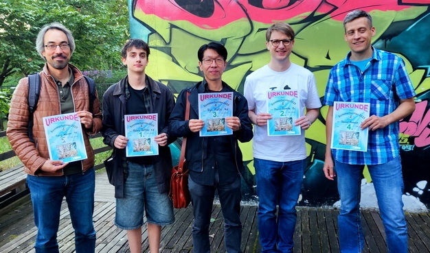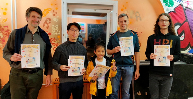 Es gewann KIM Seongjin, 7D vor WU Haohan, 5D und Arved Pittner, 5D. Adam Dottan, 3D gewann den Jugendpreis.